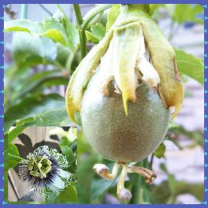 パッションフルーツ🍊7月半ばに実を3個付けたのを産直で購入し、その実もしっかり熟しました。 その後にまた蕾が出来て今見たらトケイソウ⌚の花が咲いてました〜(*´σー`)エヘヘ キュンキュン乙女倶楽部 🔖令和の小さい秋