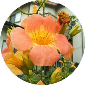 曇り☁の休日 お日様が出ないと涼しく感じる〜 昨日葉牡丹のタネを植えました 秋には花咲くかな🌱 このお花友人宅のお庭には咲いてました。ノウゼンカズラ