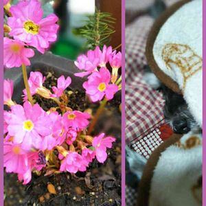 キンギョソウモンティゴシリーズ 去年購入しました。耐寒性があるとは書いてありましたが、こちらの冬は越せないだろうと思いましたが、室内には置き場がなく、枯れても仕方ないなぁと思ってましたが、頑張りました〜😁 寒い冬を乗り越えまた咲きだしてくれました😊 ありがとう〜って感じです💗 左上と右下、昨日夕方散歩してたら、お友達のワンちゃん(同じMシュナウザー♀4歳)に会いました。たまたま娘も一緒だったので、写真撮ってもらいました🐶🐶 左上は挨拶をしている所 右下は吠え合う2匹💦 いつもこんな感じでさよならします(笑)