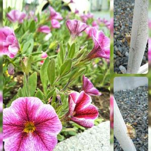 スーパーベル ストロベリースライス。沢山花が咲き出しました😍 右上下は今朝雨上がりの庭に小さい訪問者がいました🐸こんにちは〜と挨拶をしたら、「ひょっこりはん」してました(笑)