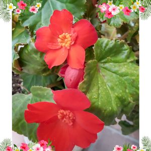 おはようございます😄 朝から雨☔️降り~ キュンキュン乙女倶楽部 🏷️赤い絆参加します 唯一我が家の庭に咲いている赤い花 ベゴニア マカルージュ紅赤色 去年の5月に職場から頂いた花が今年も咲いてくれました😍