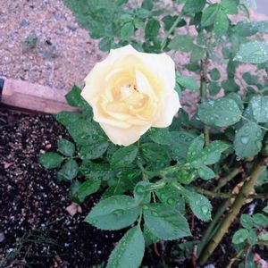 ブルームーンとピエールドロンサール🌹に挟まれて凛とした咲き姿を見せてくれました🌹 イエローカラーはやっぱりビタミンカラーですね🌼雨上がりにとっても映えます❗️😊