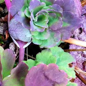 寒さに耐えてよく頑張ったオダマキの新芽🌿 何重にも重なって 素敵な色合いね💖