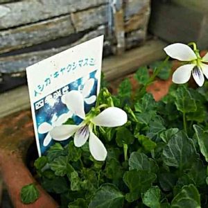 涼しい日陰に置いてる鉢植えのイシガキヤクシマスミレがまた咲いてくれています 冬でも常緑で四季咲きです これも何年も育てています🍀 好きなスミレです❤