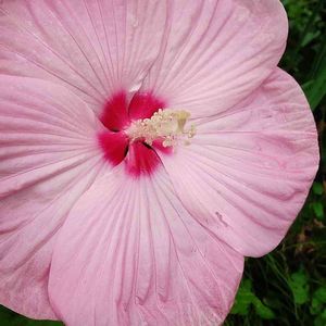 今年もタイタンビカス咲きました こちらは一昨日から☔が降り続いています 朝起きたら☔の中咲いていました 雨で綺麗には撮れなかったけど 初開花の記念に…(o^-^) (アオイ科フヨウ属の宿根草)