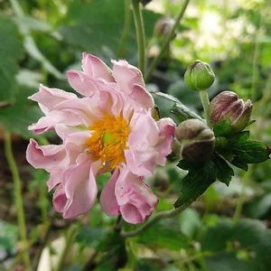 シュウメイギク(踊り子) 花弁がクルンとしてカワイイピンクの八重咲きです