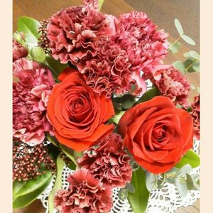 キュンキュン乙女倶楽部 🏷️2019燃えるような赤❤️ 部外者ですが、参加させていただきます✨😌 以前のpicですが、娘が転勤の時に送別会でいただいてきたアレンジメントです❣️ 真っ赤なバラ🌹と、シックな赤のカーネーションが素敵で、お気に入りのpicです😆 ガラケーで撮影📷したものなので、画質が悪くてすみません😣💦 ところで、キュンキュン乙女倶楽部が気になっているのですが、入部条件などはあるのでしょうか? もんもんチャンさんに入部許可をいただきました🙆 部員No.214、よろしくお願いいたします😌❣️