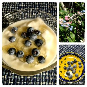 おはようございます☀️*゚ 昨日、初めてブルーベリーを収穫しました🫐 去年の秋頃?に公園で無料配布していた苗なんですがすくすくと育って実をつけてくれましたෆ˚* 甘くて美味しかったのでヨーグルトと一緒に👌🏻 ̖́-︎ ②③④はコットンキャンディ まだピンクのお花と終わりに近いグリーンのお花が咲いています•ᴗ•✿ 旧枝咲きらしいので、今月中には剪定しないといけないですね( ˊᵕˋ ;) ブルーベリーはまだ熟していないものもあるので、収穫終わったら剪定しようと思います🫐