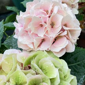 PW(ハクサン)のHPリニューアル記念プレ企画でいただいた ハイドランジアコットンキャンディー🍭の色が変化してきました💕 大きな花は、周りから白(きみどり)っぽく、小さな花は、届いた時よりピンクが濃くなってきました😊 東海地方も、29日とうとう梅雨入りしました☔️ 紫陽花は、雨に濡れて、益々いきいきしてきますね。