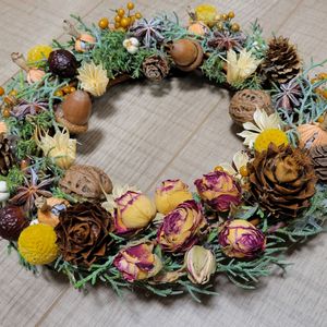 ナチュラルリース 家にあるお花でリースが作れる楽しい季節😊 今日も色々収穫しては干す作業