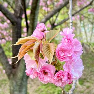 🏷️ビューティフルサンデー🏷️リース 🏷️お花見 里桜のリース💗💗💗 作ったのではなく、自然のまま枝先に咲いている様子です🌸🌸🌸 このまま持って帰りたいくらい可愛かったです😍 2枚目、 穏やかな午後、ベンチで1人楽しむお花見🌸 シートを広げて賑やかなお花見🌸それぞれのスタイルで楽しんでいましたよ♪