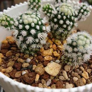 今年の誕生日に友達から頂いた、 マミラリア グラシリス(明日香姫)の 株分けした子株の接写( ˘ ◞˘ ) 春秋が適期?のようなので2つだけにしておきました