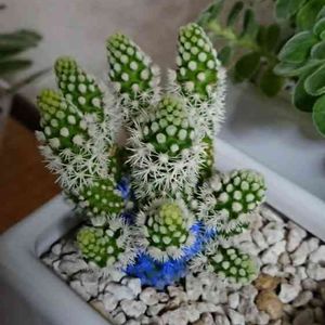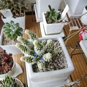 鶴仙園で購入〜 帝冠(Obregonia denegrii) 恵比寿大黒(Pachypodium densicaule) 雪景色(Haworthia wimii x splendens) 月宮殿(Mamillopsis senilis) 明日香姫(Mammillaria gracilis "Arizona Snowcap") 今回は念願の帝冠、恵比寿大黒を購入しました。恵比寿笑いは接木苗はあったのですが、実生でさらに育てやすいと聞く恵比寿大黒を選びました。 雪景色は最近夢中になっているイボのあるハオルチア〜 それと、マミラミアコレクションを増やすため… タネが付いているようなので、後で巻いてみようかな