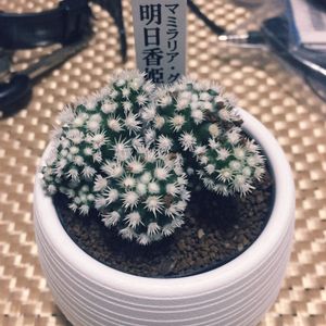 近所の野菜直売所にて一目惚れして購入しました✨ ...が、名前が分からずです😅 【追記】サボテンのマミラリア属の明日香姫というそうです!! 教えていただいてありがとうございました🙏