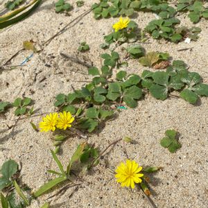 ニガナが砂に埋まってる?🌼🌼 よく見たら砂浜を這っています👀? 初めて出会いました🤗🎶