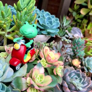 楽しくゆこうカエル祭りに 参加しまーす❗️ セダムの森を ツーリングしてるよ🚲️ セダムが モリモリに なってきました。 鉢から はみだしそう