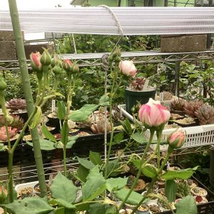 オジェ様を背負う結愛。 結愛とオジェの間には、モンクゥールとロクサーヌの蕾がたわわ💕 右端は旋律。 みんな同時に咲いたら最高だけどそうは上手くいかない。。