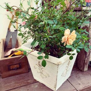 少し可哀想なpicを。 長い間楽しませてくれていたミニバラ モカ🧡 今年は春に咲いて以来本当に不調でした。前年はカイガラムシに覆われたりとにかくか弱いけれど春の花付きには目を見張るものがあり大好きでした。 でも今朝、太い枝を触ってみたらグラグラし、すぽっと簡単に抜けました。 根は白い根がちょろちょろ。全く張っていません。 土の中はまだ確認していませんがもう復活は無理そうです。。