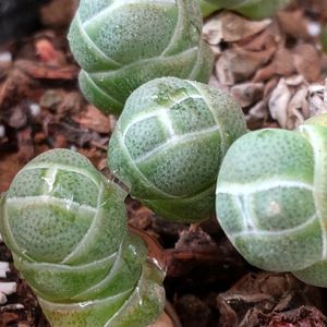 何かコソコソと話しながらこっちを見ている クラッスラ・玉椿さん😻💚🤍 毎夏 根っこちゃんの部分が枯れ込んで来て✂️になるので チビ助になります…😹 『また✂️されるんだろうな…💨』 『夏越し下手💩なヤローだゼ…全く💢』 って言ってる気がする…(´-﹏-`;)
