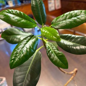 お迎え😊葉っぱの小さいフィカスルビキノーサ😊フランスゴムの木🇫🇷☺️樹形がかっこいいドラセナコンシンネ😎 フィカス・ルビキノーサ(学名:Ficus rubiginosa)は、「フランスゴムの木」という和名で知られる、人気の観葉植物です。クワ科フィカス属の非耐寒性常緑高木で、原産地はオーストラリア東部などです。 特徴 葉: 光沢のある濃い緑色の小ぶりで丸い葉が特徴です。一般的なゴムの木よりも葉が小さく、優しい雰囲気を持っています。 幹: 幹はしなやかで、曲がり仕立てにされることも多いです。 別名/英名: 別名も学名と同じくフィカス・ルビギノーサと呼ばれ、英名も同様です。また、葉の裏などに赤茶色の毛が生えていることから「鉄サビ」を意味する「ルビキノーサ」という名前が付けられました。 花言葉: 「永遠の幸せ」や「すこやか」といった縁起の良い花言葉を持ちます。 育て方 置き場所: 明るい場所を好みますが、直射日光は避けて、レースのカーテン越しのようなやわらかい光が当たる、風通しの良い場所で管理してください。 水やり: 土の表面が乾いたらたっぷりと水を与えます。冬場は水やりの頻度を減らし、乾燥気味に管理します。 温度: 最低10℃程度の耐寒性がありますが、冬場の夜間など極端に冷え込む場所は避け、暖かい室内に置きましょう。 初心者向け: 育てやすく、初心者にもおすすめの観葉植物です。