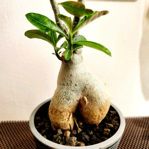 🏷️みしょり隊! 一昨年の夏に種まきしたアデニウム・ ソコトラナムのお三人。一人だけ超ノッポ。身長23センチになってました。