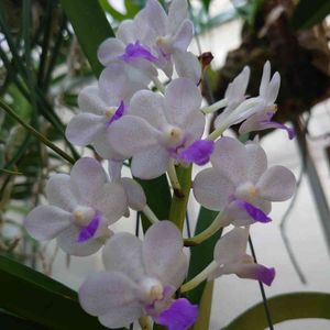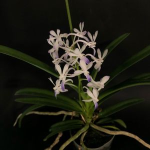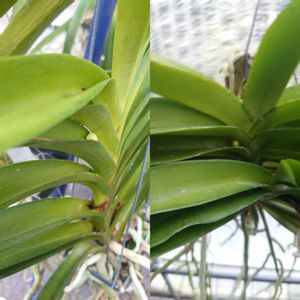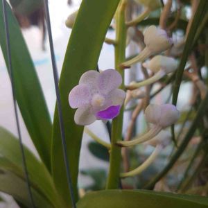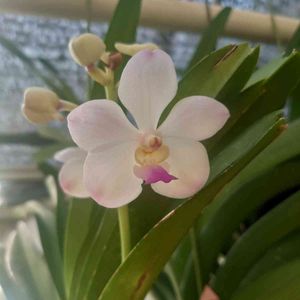 バンダコスティリス開花しました! 交配親のセレスティスに似ていますが、形はバンダより!? 片親のバンダはどういったは花か分かりませんが 花にはいるドットは片親のバンダのよるものなのかな?🤔