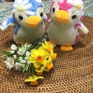 今日から 新学期なんですねぇ.... 可愛く💕 手を 繋いで、行く 小学 新 1 年生。。。 可愛さ、たっぷり、、、 ペンギン🐧さんの ペアーに 花束 💐 の pic 、この春に 撮ってたので、今日の スタートに 合わせて、投稿 させて下さいね❣️ ☆ 黄色の 房咲きスイセン ☆ スノーフレーク ☆ かすみ草 ☆ ローズマリー の 葉っぱ の、ミニミニ アレンジ です。 今日は、あまり 天気良くなく、 寒い❄️です〰️‼︎‼︎ 😖