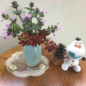 朝、ゴミ出しで 行ったら、 近くに ホトケノザ が ひっそり 咲いていて、とても 健気 だったので、 ちょっと 摘んできました🌸 紅葉🍁した 多肉の オーロラ と 合わせました❣️