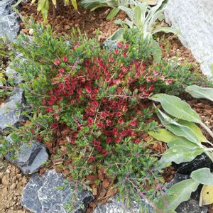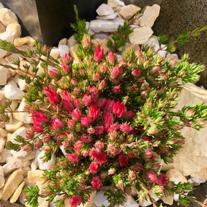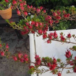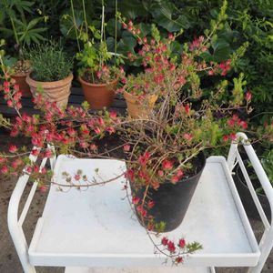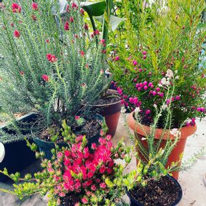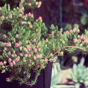 オージープランツをお迎えしました🌱 針葉樹のような雰囲気の葉っぱで花は小さいグレビリアのよう。 数え切れないほどの蕾が枝を覆いつくし濃桃色の花が次々と咲き乱れます🌸🌸🌸🌸🌸🌸🌸 名前のダーウィニアは進化論で有名なチャールズ・ダーウィンの祖父に由来するとか。 どうやら耐夏性と耐寒性どちらも弱いらしく、地植えのつもりだったけどとりあえず鉢で育てる決意をする☺️