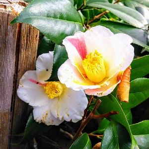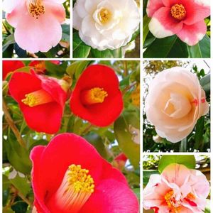 椿 いろんな色合いの花が 一本の木に咲いていました お得感😅