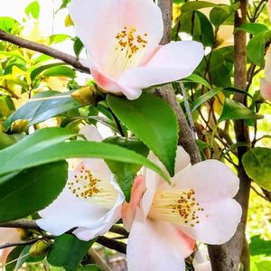 ツバキ 薄桃色の優しげな椿が 綺麗に咲いていました💗