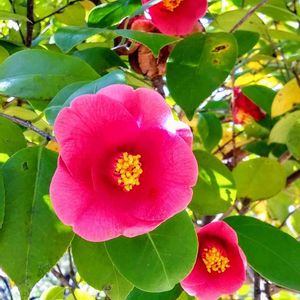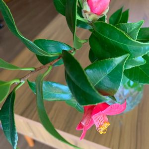 椿の花 蕾が沢山付いている中で一個だけ 咲いていました🌹•*¨*•...🌺..。.:*🌷