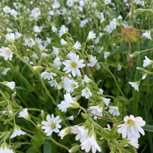 こんにちは☀ 今日は晴れた〜 先日も一部Upしたセラスチウム 毎年なんにもしなくても咲いてくれて、今年も我が家の灯油タンクの周りで満開(*˘︶˘*).。.:*♡ 誰がいつ植えたんだろう? ほとんど記憶にないんだけど‥^^;アハハ