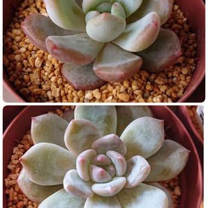 先日届いたリエール運試し&プチコマ3周年記念セット😊 届いた中で大きめサイズの苗です💕 上段左から ゴーストシャビ、グルニチカウレ×エレガンス、メキシカンスノーボール 下段左から センセーション、オビフェルム どれも持っていないのばかりで、嬉しい😊 来年の今頃は、紅葉している姿を見られるかなぁ😌 今から楽しみです🥰 オビフェルムは月美人かな? 足元に子株が付いていたので、チョンパ✂️して2鉢に分けました🤗 今回届いたセットは、これで終わりです🤗 2セット、欲張りすぎました😄😆🤣
