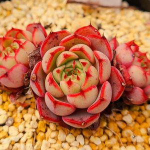 エケベリア(Echeveria) ム-ンストーン / Moon Stone 葉先にかけて赤く、真っ赤な爪で綺麗です👍紅葉🍁は冷めてきて緑が強くなってきました👀 Lier苗