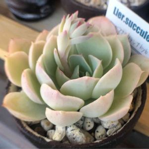エケベリア(Echeveria) メキシココロラ-タ×ヒアリナ 花芽が伸びて花💐が咲きそうです👀 刃先がほんのり赤味掛かってこの色合い好みです😊 Lier苗