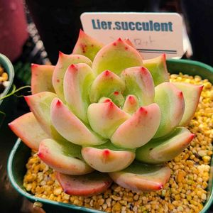 エケベリア(Echeveria) ムーンストーンプリドニス×リラシナhyb まだ小さいですが、綺麗になってます😊 もう少し赤くなるかなと思ってましたが、 Maxかも✋🏼 Lier苗です👍