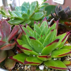 ガイドトゥエケベリア我が家版。 アガボイデスの交配種で相生傘×リンゼアナです。 真っ赤に紅葉します。