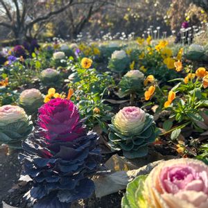 毎日寒い日が続きますが~ 散歩道の花壇たちに癒されます✨️ ハボタン パンジー、ビオラ 大好きなローダンセマム🤍 この角度が好き💞 これからモリモリ楽しみだぞ🥰 室内のお花 エボルブルスブルーラグーン💙 まだ、咲いてますよ ༘*꒱🦋