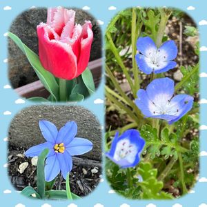見切品で仕込んでおいた球根と⬅️今年も買わなきゃと思ってたネモフィラが、昨年のこぼれ種子では⁈と気付いて結構発芽してた嬉しさ🤣 春はどこもお花が沢山で見てると欲しくなってしまうので横目で。:+((*´艸`))+:。 💕