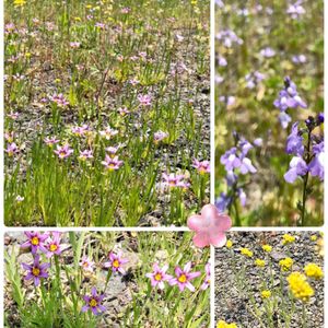こんばんは〜〜 空き地の雑草花園🌱🌸🌱 ニワゼキショウ、母子草、マツバウンラン アメリカフウロ、カタバミ、コメツブツメクサなどなど 花盛り🌿🌼🌱🌸🌿