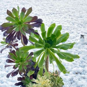 ꧁꧂冬の大スターマイン꧁꧂ 🎇!҉*\( ・ω・ )/*҉🎇 ( ᐛ👐) パァと咲いてるところを見ると パワーがもらえそうな気がして 一時集めたアエオニウム 最大径15センチ以上あります😆 今朝はうっすら雪が積もってました❄️ 今年はよく降るなぁ⛄️