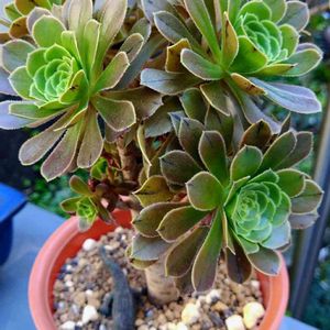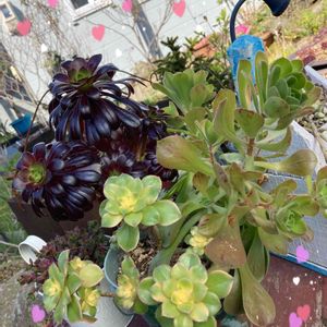 ⭐︎⭐︎番外編 ❻⭐︎⭐︎ アエオニウム属の色々 我が家のアエオニウム属の紹介です。 エケベリアは名札を立て、お一人様で厳重管理する私ですが、アエオに関してはそんなことなく、伸び伸びと育てております😊🎶 右後ろの棒状の黒法師だけ寒波の時にしまい忘れ、たった一晩でダメになりました😭大事にしてたんだけどなぁ💧 ど真ん中に愛染錦の横にひっそりといる子、左後にいる子はまだら黒法師ですかね?そうだったら嬉しい(o^^o)♡