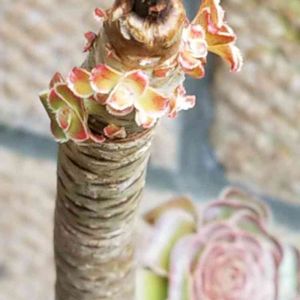 先日 花が咲いて 花後枯れると聞いてた アエオニウムまだら黒法師の花後 お花チョンパしたあとが こんな感じ 小さい こっ子が出てるではありませんか😁 このままだと 枯れるどころか 増えるのでは?