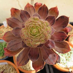 購入時に名札がなかった,まだら黒法師と思われるアエオニウム。ここのところ成長点付近が盛り上がってきた。花芽っぽいけど,咲いた後は枯れてしまうのかな?