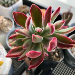 木立ちハムシーさん ワインレッド🍷のベルベットが最高✨ 久しぶりに帰郷した娘に「なんか…増えたね」って真顔で言われたけど、 「エケベリアはね、胴切りするとそこから2〜3個子株がでてね…」 という言い訳をしておきました。 「バイバインじゃん!(※ドラえ⚪︎ん)」 と言っておりました。そうそう。