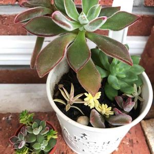 植えっぱなしだった多肉ちゃんたちをお仲間さんで植え替えをしました。上手く根付いて欲しいなぁ〜。 まだ朧月さんとブロンズ姫はまだ植え替えできてないので、頑張らなくてわ‼️