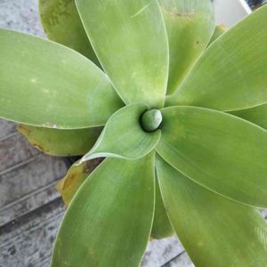 アガベ アテナータ 葉が点々と透けて少し黄色い感じです 夏に弱りましたが秋には復活し元気で鮮やかな緑の葉でした。何がいけないのでしょうか? 水やりは今の時期1ヶ月に一度位 南西の窓辺で日光には当ててます😢
