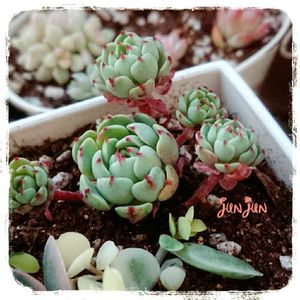 ド真ん中の日! 冬はいいけど、夏のエケベリアをど真ん中で撮ったらパッカーンてなってるだろうな~なんて…💦 て思うほどに冬のエケは締まってていいよねっ(ღ˘⌣˘ღ) 左上 リラ The美人さん 花芽もう少ししたら切ろうと思う。 左下 野ばらの精 小ぶりでかわいい( ⸝⸝⸝•_•⸝⸝⸝ )♡︎♡︎ 右上 最近お気に入りの「マローム」 ブラウンローズって名前のもいるけど、そっくりさん。ますます丸っこくなって、爪が白いとこが萌え(ᐥᐜᐥ)♡ᐝ他のエケとはまた違う(≧∇≦) 右下 ホワイトミニマ やっと調子よくなってきた子。 どんどんかわいくなぁれ~॑⸜(* ॑꒳ ॑* )⸝⋆*