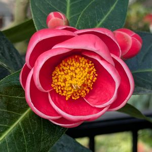 前picは不愉快極まりないモノでしたね。 申し訳ありません🙇♀️ ベトナム椿ハイドゥンキングの華やかさで厄落しします。 去年はオットの試験勉強に伴い暖房ガンガンかけていたので早くから花がいっぱい咲いた…せいで、今年は蕾は4つしかつかなかったです💦 葉っぱも落ちて消耗著しい状態で、ようやく最初の花が開きました🌸 あ、これじゃ厄落しネタにはならなかったですね😱
